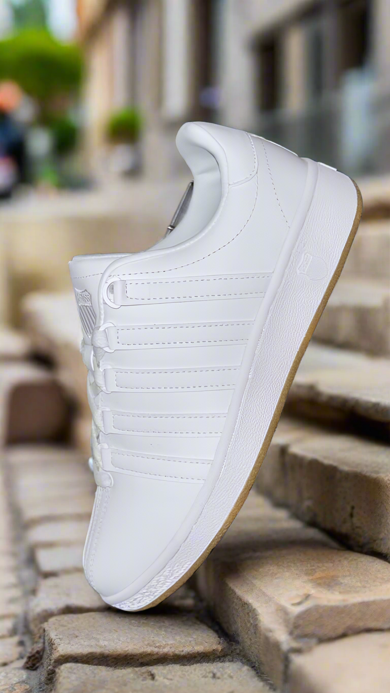 The K-Swiss Classic is the shoe that started it all—an icon of clean design and heritage court style. Originally introduced in 1966 as the first all-leather tennis shoe, the Classic has stood the test of time with its signature five-stripe branding, D-ring lacing system, and premium leather upper. Whether you're dressing up or keeping it casual, this sneaker delivers a perfect balance of comfort, durability, and vintage appeal.